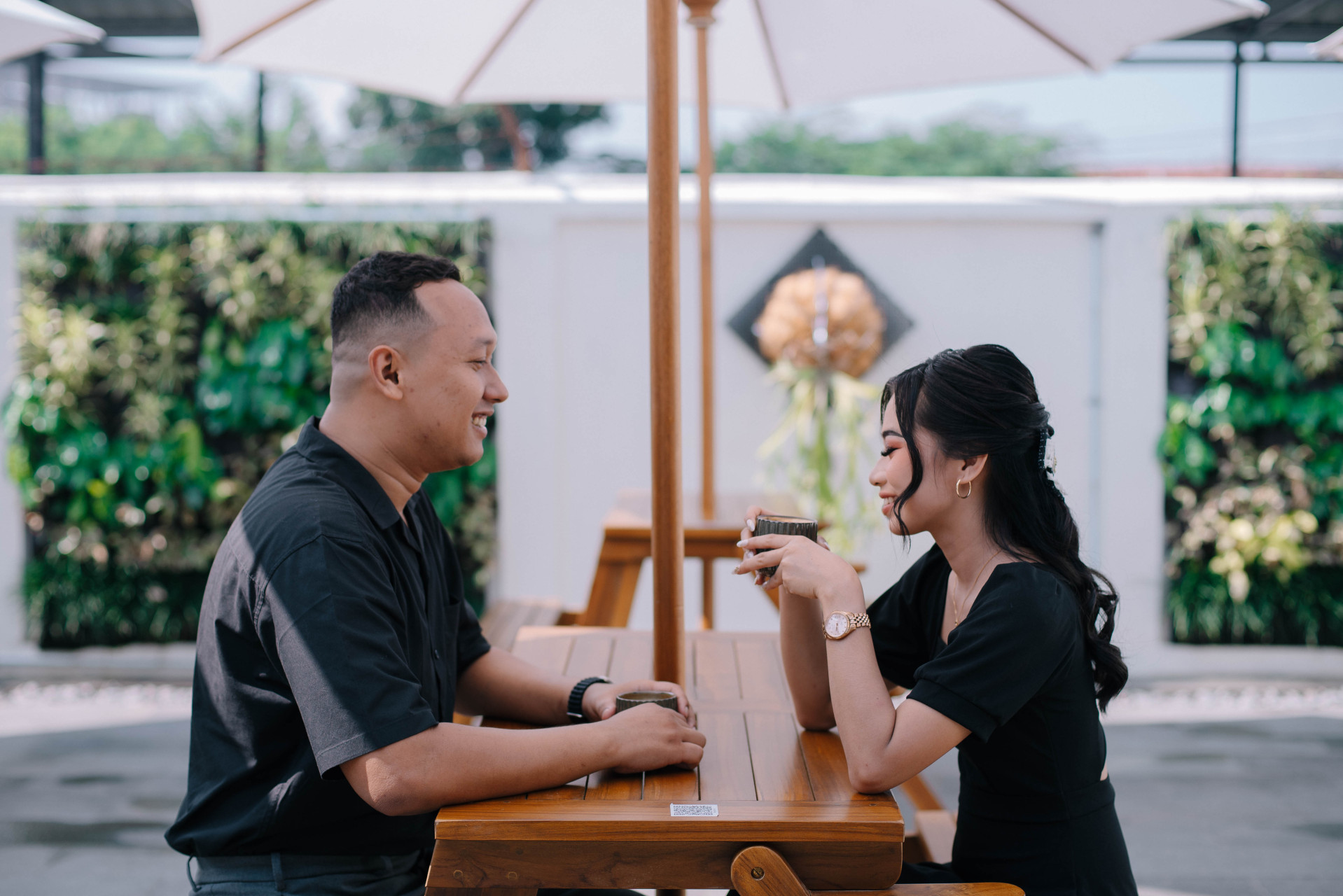 Setelah kenalan, kita coba jalan bareng sampe akhirnya kita memutuskan untuk punya hubungan yg lebih serius kurang lebih 2 tahun kita berpacaran, sampe akhirnya kita membangun usaha bersama dan memutuskan untuk menikah.